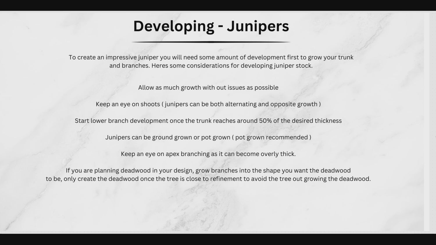 This is a live replay from our class with our Northern Hemisphere Students over zoom for their 5th summer class teaching Juniper techniques. Here is what is included in this lesson.